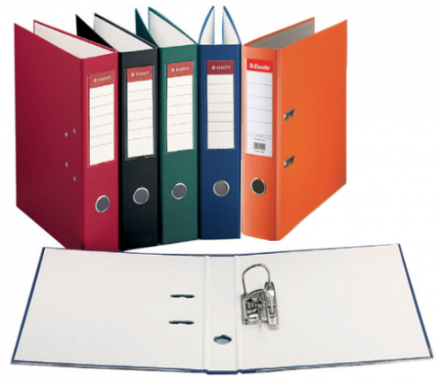Archivador de palanca, fabricado en plástico forrado. Cartón forrado de plástico en el exterior y papel en el interior. Con tarjetero extralargo, cantonera metálica, ollao y ranuras para facilitar la sujeción de la tapa. Compresor metálico. Tamaño folio, lomo de 75 mm.