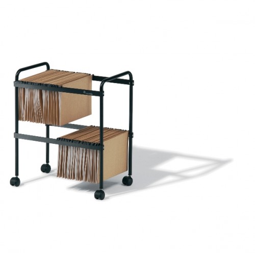 Carro móvil metálico para carpetas colgantes. Dispone de 2 niveles, para 40 carpetas por nivel. Formato folio. Fácil montaje. Medidas: Alto 67,5 cm. Ancho 36 cm. y Largo 64,5 cm.