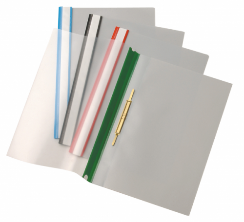 Fabricados en plástico PVC con acabado liso con mecanismo de metal de dos piezas. Tamaño folio.