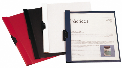 Dossiers con pinza lateral de sujeción en el lomo, fabricados en plástico y con capacidad para 30 ó 60 hojas tamaño DIN A4.