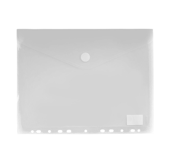 Sobre polipropileno traslúcido con solapa, multitaladro y cierrre autoadhesivo.