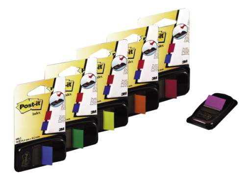 Marcapáginas de quita y pon en colores. Para señalar páginas en libros, archivos, listados, etc... Se puede escribir en la superficie. Dispensador de 50 banderitas de un color. Tamaño: 25,4x43,1 mm.