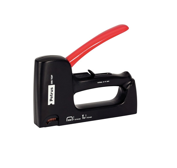 Clavadora fabricada en plástico ABS de gran resistencia. Color negro. Usa grapas 530/4 a 14 mm.