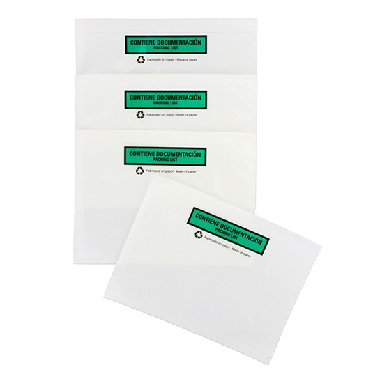 Caja de 250 sobres transparentes autoadhesivos para documentos de envío. Confeccionados 100 % en papel ECO. Con dorso autoadhesivo y con impresión en el frente CONTIENE DOCUMENTACIÓN. Dimensiones: 175x130 y 240 x 130