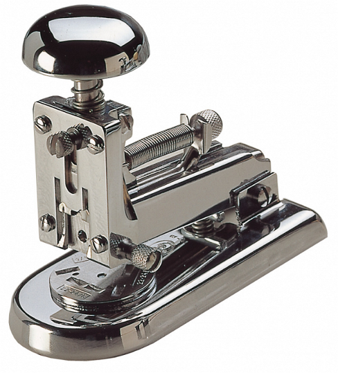 Grapadora de acero cromada. Capacidad de carga 50 grapas. Profundidad de grapado 45 mm (de 25 a 30 hojas). Grapa abierta, cerrada o mixta. Piezas de repuesto fácilmente desmontables e intercambiables. Usa grapas nº 22/6 y 24/6.