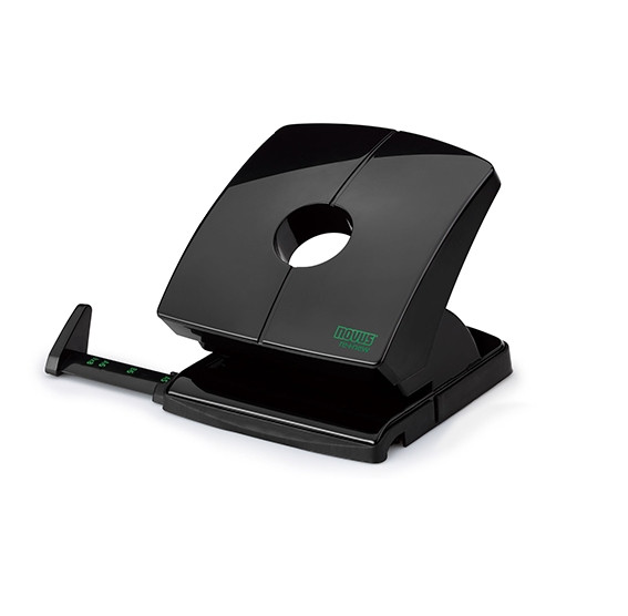 Taladro de oficina profesional fabricado con 62% de plástico reciclado y 100% reciclable. Estructura interior de metal 100% reciclado y pintado. Regleta con formatos de papel DIN para perfecta alineación del papel. Tapa inferior flexible para vaciado de residuos. Capacidad: 30 hojas de 80 gr/m2. Con certificado de Seguridad GS. German Engineering By NOVUS. Garantía: 10 años.
