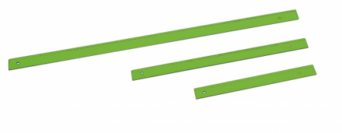 Reglas en color verde, fabricadas en metacrilato de metilo de 2 mm de espesor. Alta precisión. Presentadas en bolsa individual.