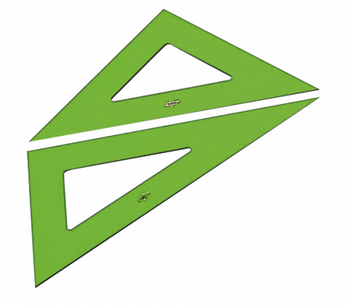 Escuadras y cartabones. En color verde, fabricados en metacrilato de metilo de 2 mm de espesor, alta precisión. Presentados en bolsa individual.