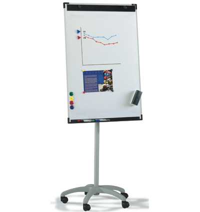 Caballete con base de ruedas. Disponen de freno. Superficie de escritura metálica que permite escribir con rotuladores para pizarra blanca. De borrado en seco y el trabajo con imanes. Marco de aluminio y cantoneras decorativas. Dispone de pinza que permite la colocación de un bloc y de bandeja para rotuladores y borrador. Graduable en 2 alturas. Garantía de 5 años en la superficie. medidas: 70x105 cm.
