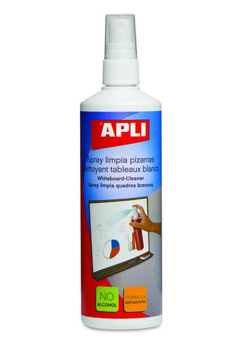 Spray limpiador especialmente diseñado para limpiar las pizarras en oficinas, despachos y escuelas, le permitira alargar la vida util de su pizarra para que este siempre como nueva. No contiene alcohol. Formula Anti-estatic. 250 ml.
