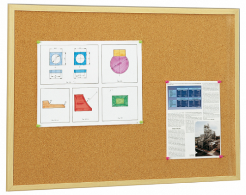 Tablero de anuncios de corcho económicos en marco de madera.