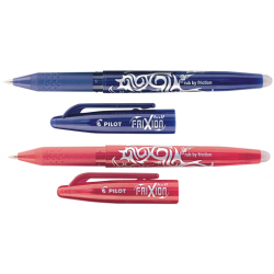 Pilot Frixion Ball, bolígrafo con tinta revolucionaria, que desaparece por fricción. No mancha el papel y no deja restos al borrar. Punta de bola con grip antifatiga. Para borrar hay que friccionar con la bola que tiene en el cuerpo
