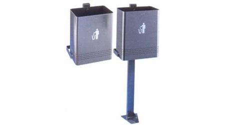 Papelera institucional en chapa electrocincada con tapa y puerta frontal. Acabado en pintura poliéster. 42 x 34 x 90 cm. 120 litros.