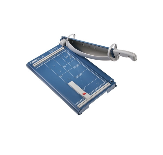 Cizalla hasta A4. longitud de corte de 360 mm.y 3,5 mm. de capacidad (35 hojas 80 g.). Mesa metálica de 440x265 mm. con esquinas redondeadas y patas de goma antideslizantes. Prácticos asideros para transporte seguro. Líneas de formato DIN impresas en la mesa. Mango ergonómico. Cuchilla de acero de alta calidad de Solingen. Sólido contrafilo de acero macizo. Protector de cuchilla transparente. Prensado manual. Dos topes angulares con escalado en mm. Tope posterior regulable.