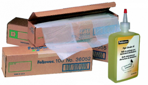 Cajas de bolsas de residuos para destructoras personales y de oficina. Aceite Lubricante especial para las cuchillas de las destructoras.