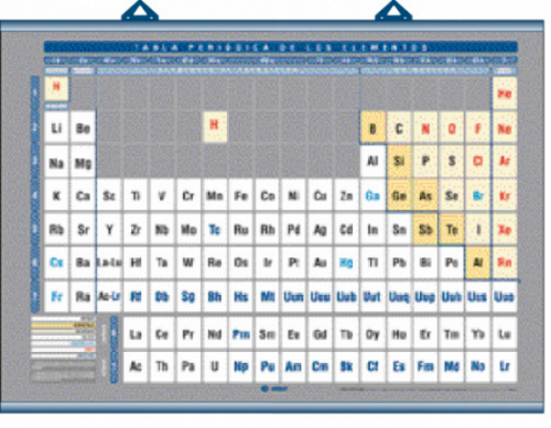 Lámina impresa a todo color a doble cara con la versión muda en el dorso para escribir y borrar. Muestra de forma clara y didáctica las principales características de los elementos químicos según estados y grupos. Actualizada con los nuevos elementos del 113 al 118. DISPONIBLES EN CASTELLANO, INGLÉS Y FRANCÉS.