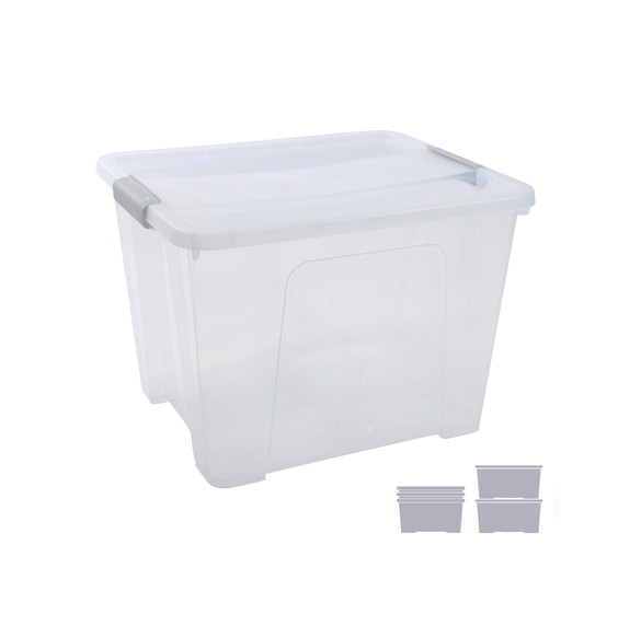 Caja almacenaje Archivo 2000 32 litros apilable y encajable, gran calidad y resistencia. Con tapa. Medidas exteriores: 360x420x300 mm. Color cristal transparente.