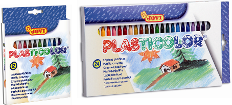 Estuches de ceras plásticas Jovi Plasticolor en colores surtidos.