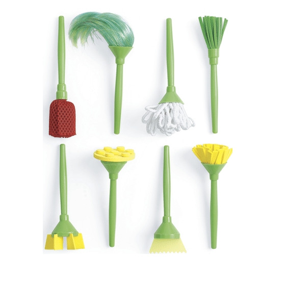 Bolsa de 4 escobillas con diferentes trazos para aplicación en pinturas escolares. Medida 11 cm de longitud.