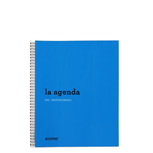 Datos personales, calendario (2 cursos), horario (2 páginas), reuniones curso por trimestre, actividades del curso por trimestre, planificación trimestral, semana a la vista, evaluación (31 páginas), hojas cuadriculadas con 5 pestañas, direcciones y teléfonos, Webs.
