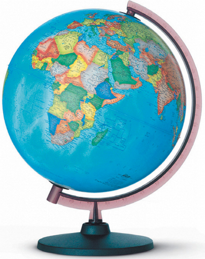 Esfera terrestre política de 30 cms. de diámetro con meridiano.