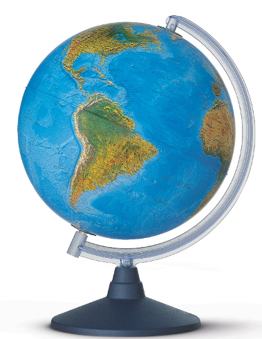 Esfera terrestre físico-política de 30 cms. de diámetro con meridiano y luz.