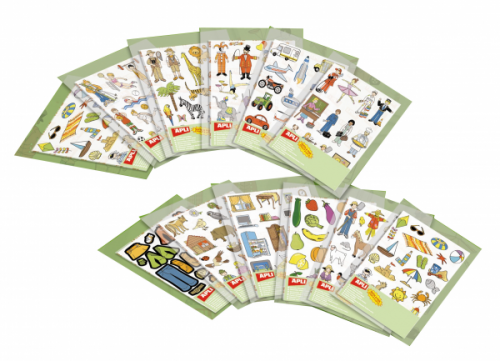 Sobres de Gomets temáticos removibles con adhesivo de quita y pon en colores atractivos. Bolsa con 12 hojas.