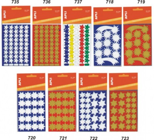 Sobres de gomets de Estrellas distintas medidas y colores.