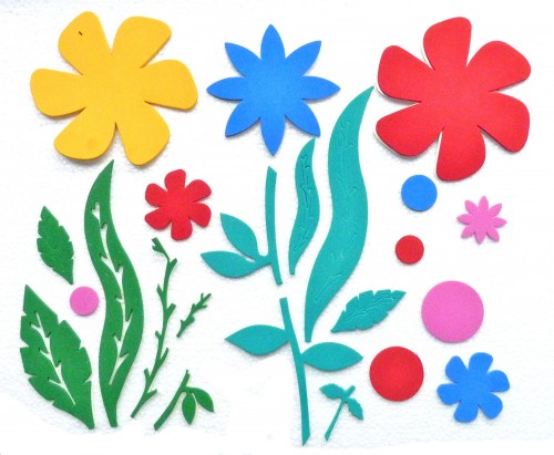 Bolsa de 50 figuras surtidas de hojas y flores en distintos colores de 2 mm de grosor. Bolsa de 50 figuras Eva Adhesivas Jardín