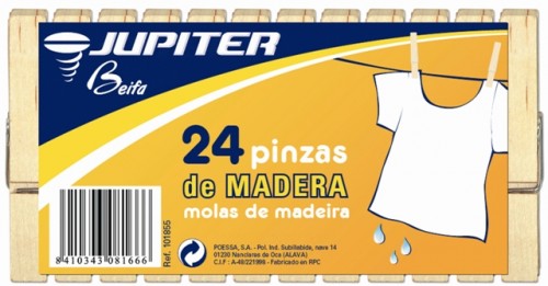 Pinzas grandes de madera en color natural. Bolsa de 60 unidades