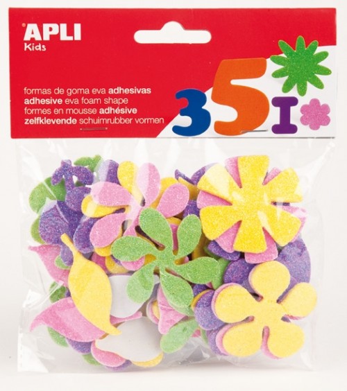Bolsa 48 flores y hojas en purpurina colores surtidos.