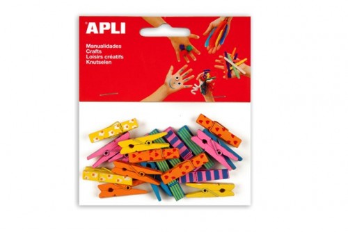 Bolsa de 20 pinzas de madera decoradas de 35x7mm.