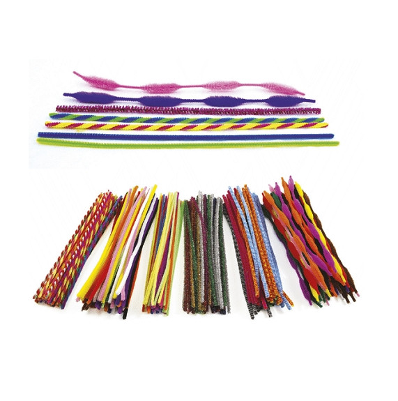 Pack de 250 chenillas variadas. Diámetro de 4 a 8 mm y 30,5 cm de largo. Colores: negro, azul, marrón, naranja, rosa, rojo, violeta, amarillo, blanco y verde.