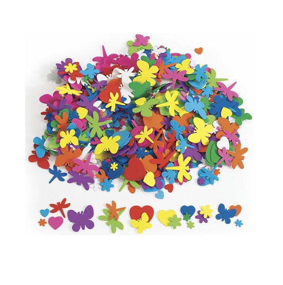 El paquete colorido con mariposas, libélulas, corazones y flores. Fácil de pegar y pegar. 10 colores brillantes surtidos: azul, verde, azul claro, verde lima, naranja, rosado, púrpura, rojo, blanco y amarillo. Los tamaños varían de 1,3 a 4,4 cm.