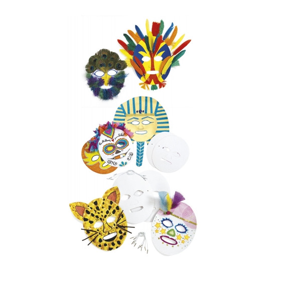 Caras de cartón para decorar con goma elástica incluida. Medida: 22,5 largo x 17,8 cm. Ancho. Bolsa de 24 unidades