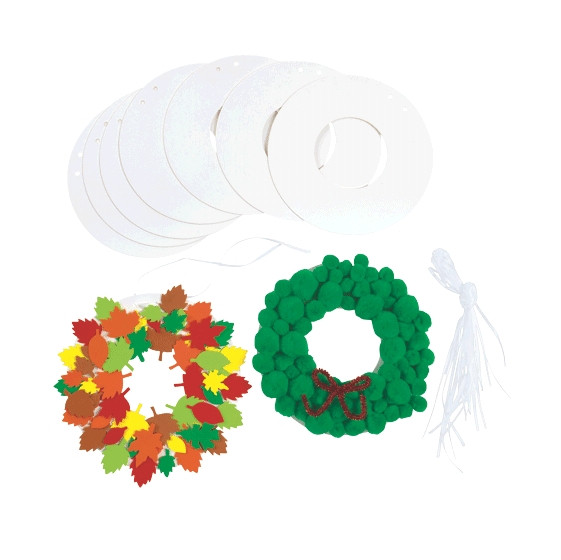 Pack de 24 aros de cartón para decorar de 20,3 cm. de diámetro. Incluye cordón satinado para colgar las coronas una vez decoradas.
