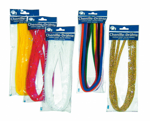 Alambres recubiertos de chenilla de 8 mm de grosor por 50 cm de longitud. Ideal para modelar distintas formas y elementos incorporables a todas las manualidades.