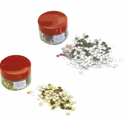 Bote de 50 gr de estrellas gigantes en color oro o plata.