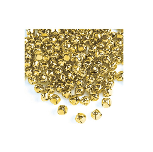 Bolsa de 150 cascabeles dorados con un sueva sonidos. Son perfectos para todas las celebraciones y decoraciones. En 3 tamaños diferentes. Desde 1,3 cm a 1,9 cm. Cada uno lleva un agujeros de encaje para encordar.