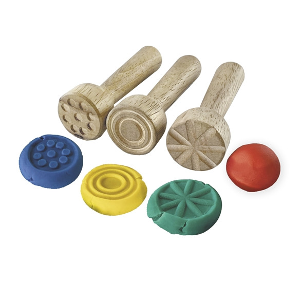 Pack 12 sellos de madera con 3 relieves diferentes para la plastilina Baby. Acabado en madera que contribuye a mejorar la estimulación sensorial y facilidad de uso. Seguros, duraderos y sostenibles, fabricados con materiales respetuosos con el medio ambiente. Pueden lavarse con facilidad