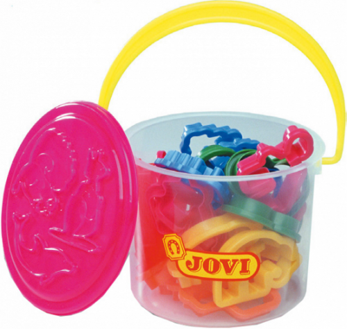 Cubo Jovi conteniendo 24 moldes surtidos para modelaje de plastilinas y pastas.