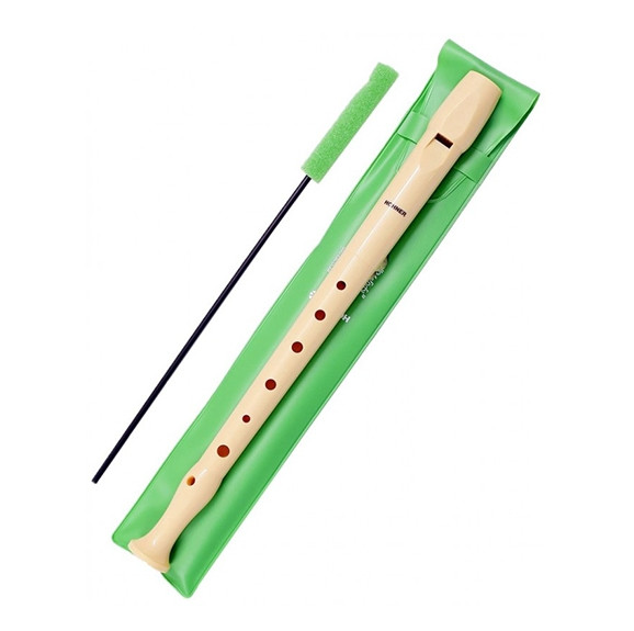 Flauta dulce escolar soprano color marfil con funda verde, incluye limpiador.