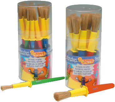 Pinceles gruesos Jovi para preescolar.No ruedan sobre la mesa ni gotean. Fácil limpieza. Tamaño medio y maxi presentados en envase cilíndrico.