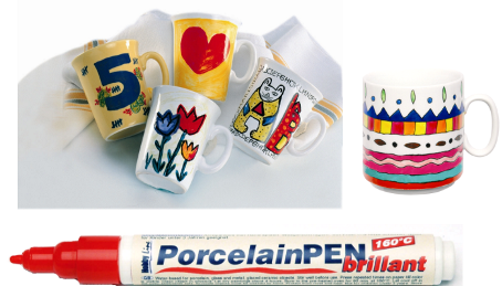 Rotulador para porcelana y cerámica Hobby Line en colores brillantes. Antes de usar, agitar el rotulador con el tapón cerrado, presionar la punta varias veces sobre el papel hasta que la pintura aparezca. Dejar secar la pintura durante 4 horas. Poner en el horno no precalentado y cocer durante 90 minutos a una temperatura de 160ºC. Una vez la cocción terminada, el objeto se puede lavar en el lavavajillas.