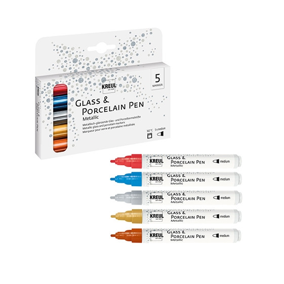 Sets 5 rotuladores vidrio y porcelana GLASS&PORCELAIN Classic en metálico. Punta 2-4 mm.