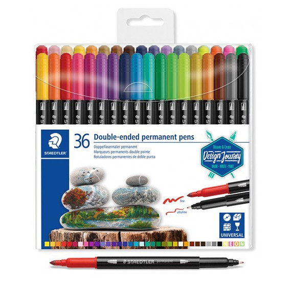 Rotuladores permanentes de doble punta, ideales para marcar diferentes superficies, con punta fina y ultrafina. Puntas con máxima versatilidad y colores intensos.