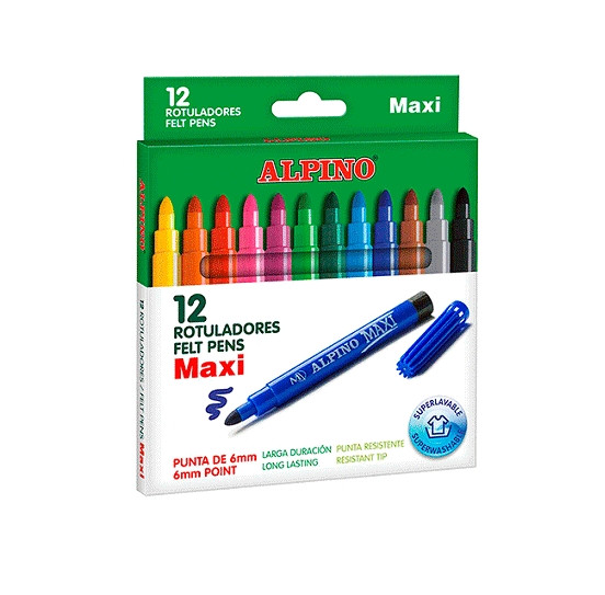 Rotuladores de punta gruesa súper brillantes, con tinta súper lavable. Diseñados para uso escolar. Resistentes y duraderos. Ancho de trazo 4 mm.