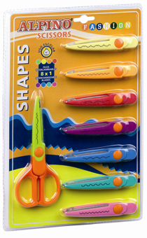 Las tijeras más divertidas, las tijeras Alpino Fashion Shapes. Contiene 8 recambios para 8 diferentes tipos de corte para crear divertidos trabajos manuales.