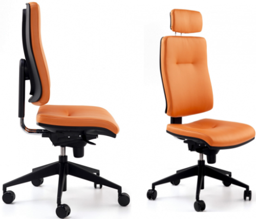Silla giratoria,ergonómica, con regulación automática de altura, sistema de regulación de respaldo y asiento mediante mecanismo sincronizado, con ajuste de presión mecánico. Regulación independiente de la altura del respaldo para ajuste lumbar. Base de 5 radios en poliamida. Asiento y respaldo con carcasa protectora de polipropileno. Sin brazos. Sistema de asiento deslizante opcional. Tapizado con costuras. Silla Key One 874: Silla sin cabezal. Silla Key One 873: Silla con cabezal tapizado regulable en altura y con el plano de apoyo adelantado para mejorar la ergonomía. Tapizado 0.