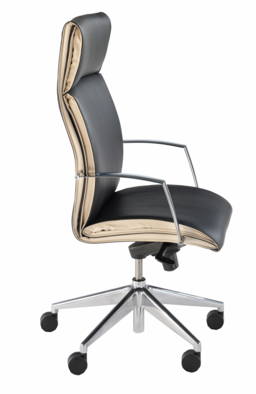 Sillón diseñado con un concepto exclusivo y original, una tapicería por capas combinando espuma con fibra maximizando, así, el confort del usuario y permitiendo combinar dos colores de tejidos.Ligereza de líneas y perfectas proporciones obtenidas por la combinación de tapicerías, brazos exclusivos y bases de última generación. Brazos exclusivos de sección oval, fabricados con poliuretano inyectado sobre alma de acero de serie o bien con tubo de acero cromado opcionalmente a los que se pueden incorporar apoyabrazos de poliuretano, madera o tapizados. Respaldo alto, basculante con brazos de poliuretano y base de nylon. Tapizado en categoría 2 (el tejido TOM es el más apropiado para este sillón).